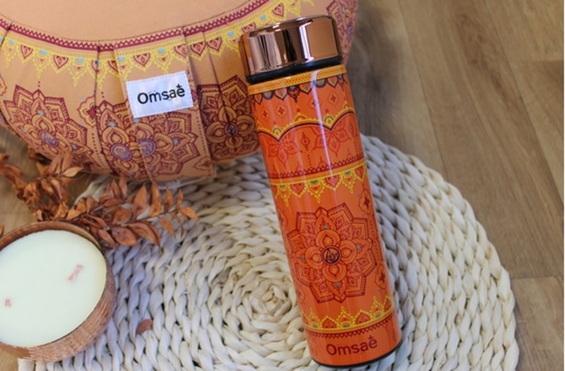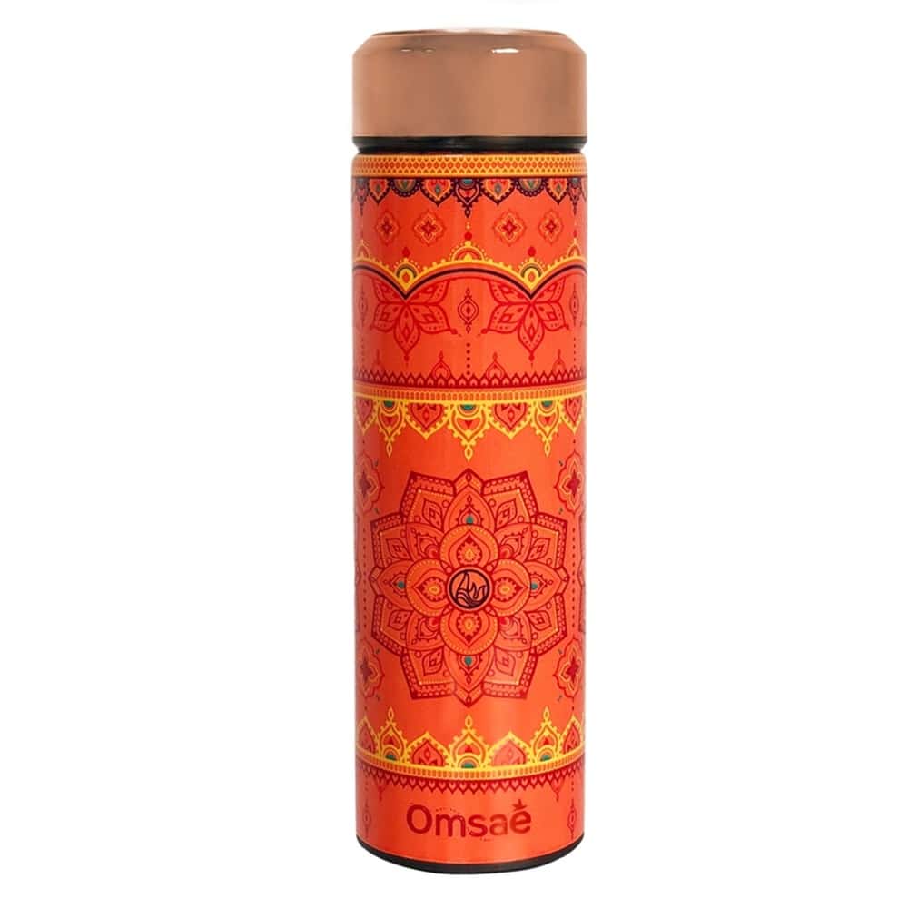 Gourde isotherme en inox avec infuseur Imprimé Ayurveda à emporter partout avec soi pour déguster son thé ou sa boisson préférée tout au long de la journée.
