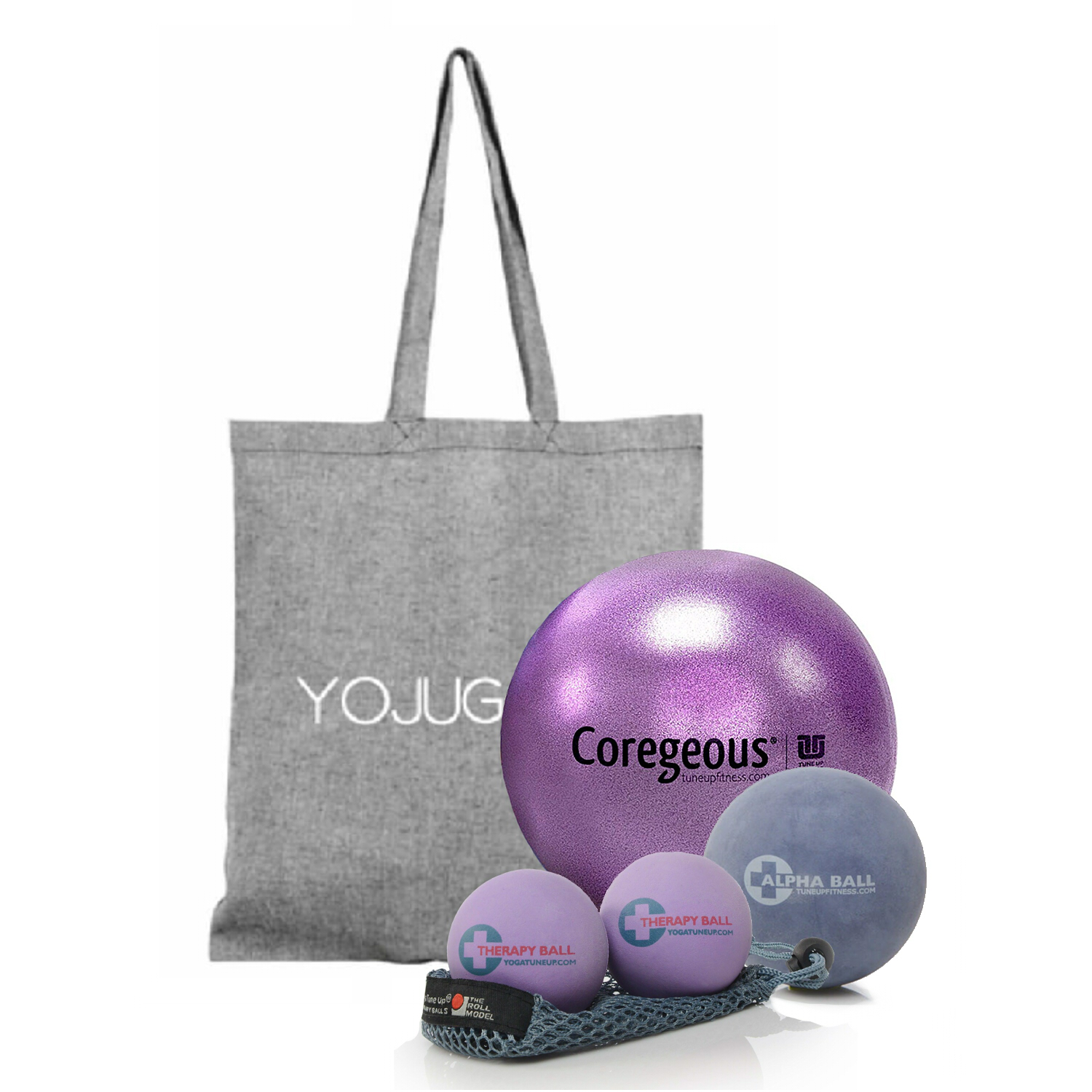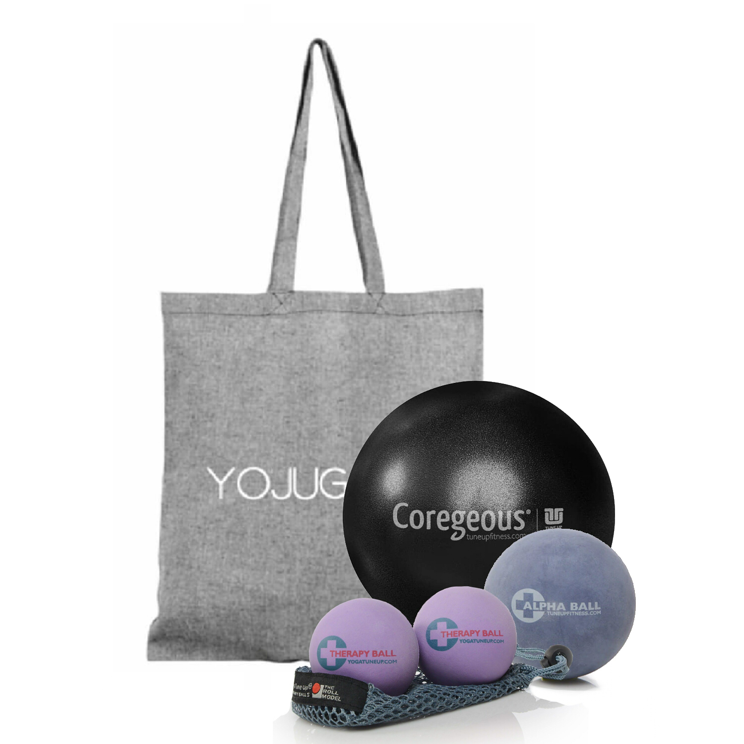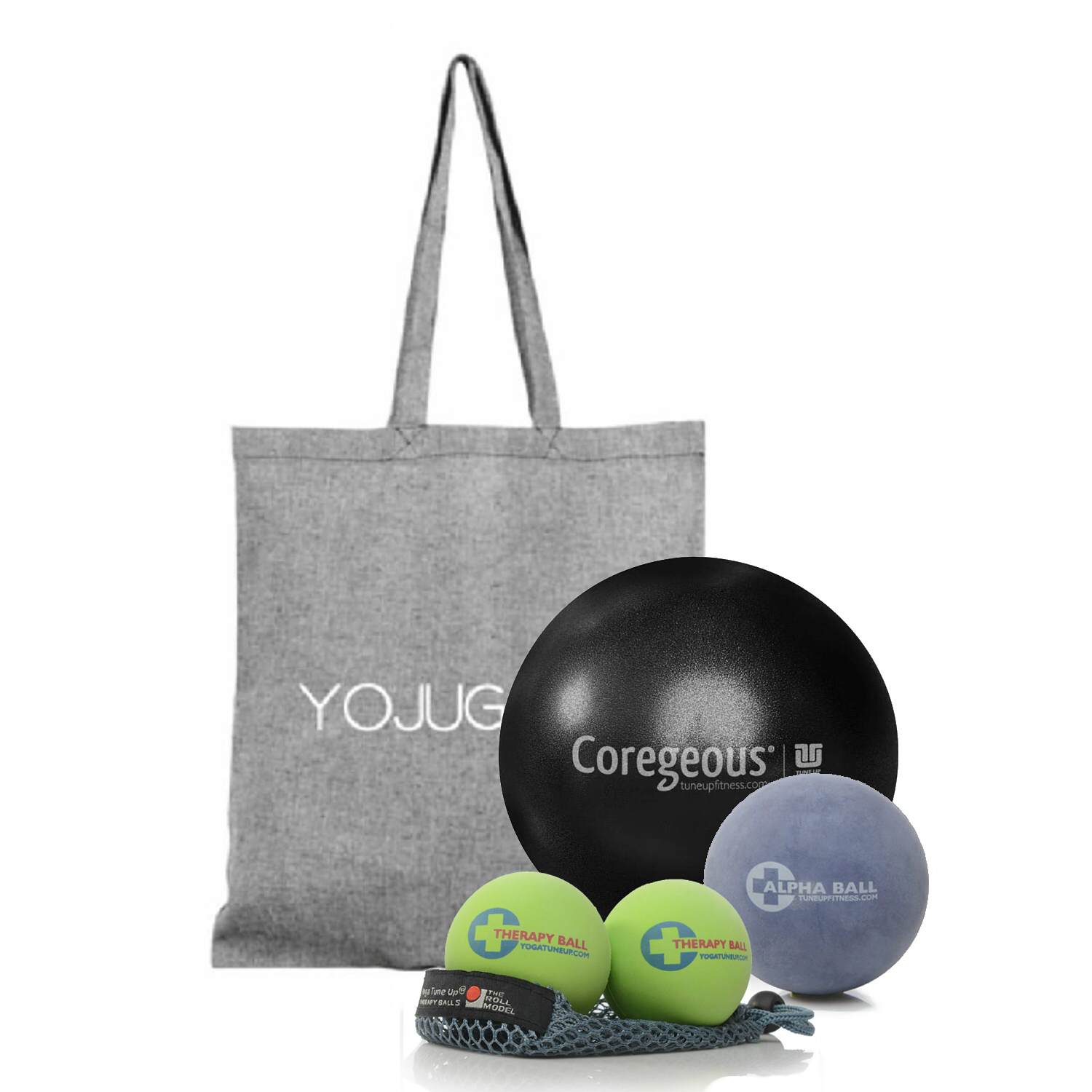Le Roll Model Starter Kit conçu à partir de balles et ballon thérapeutiques Tune Up Fitness comprend :