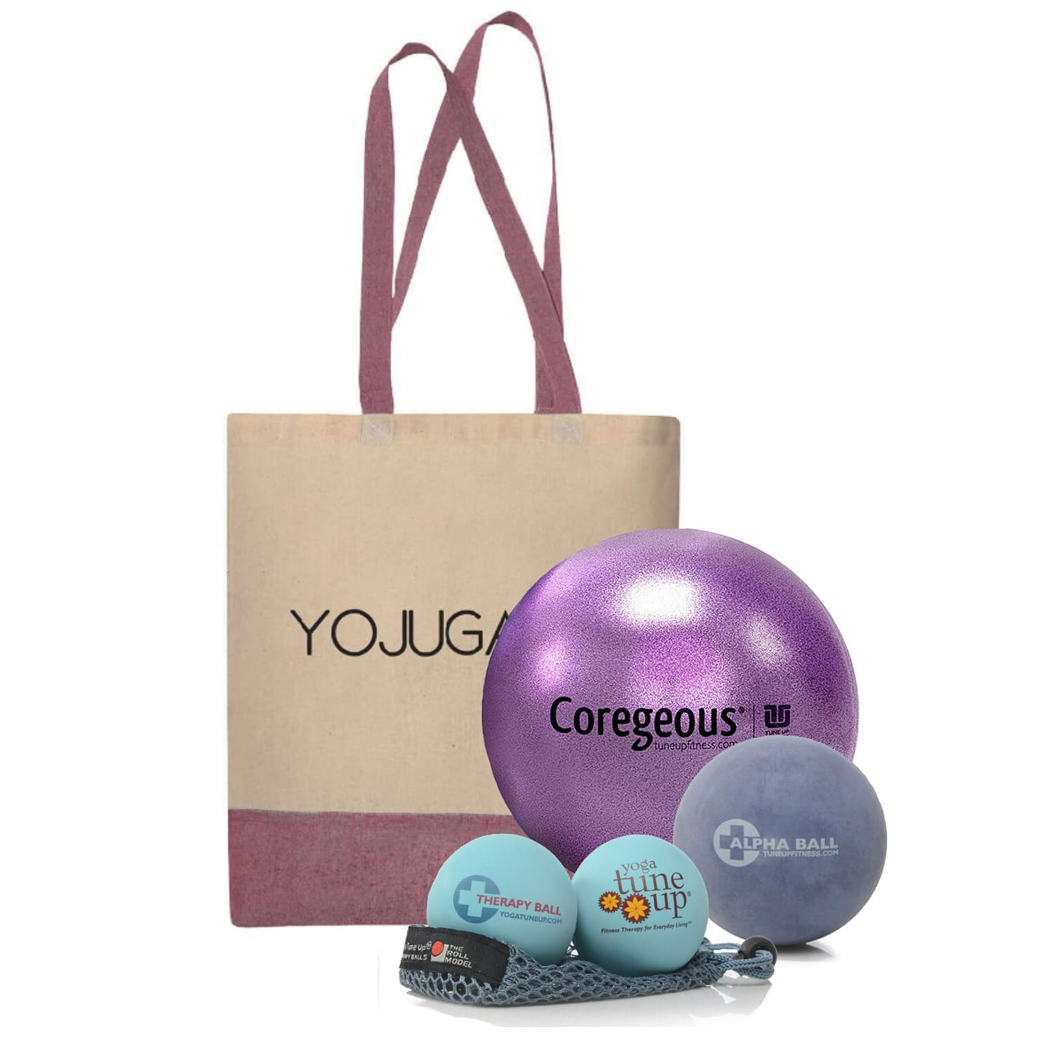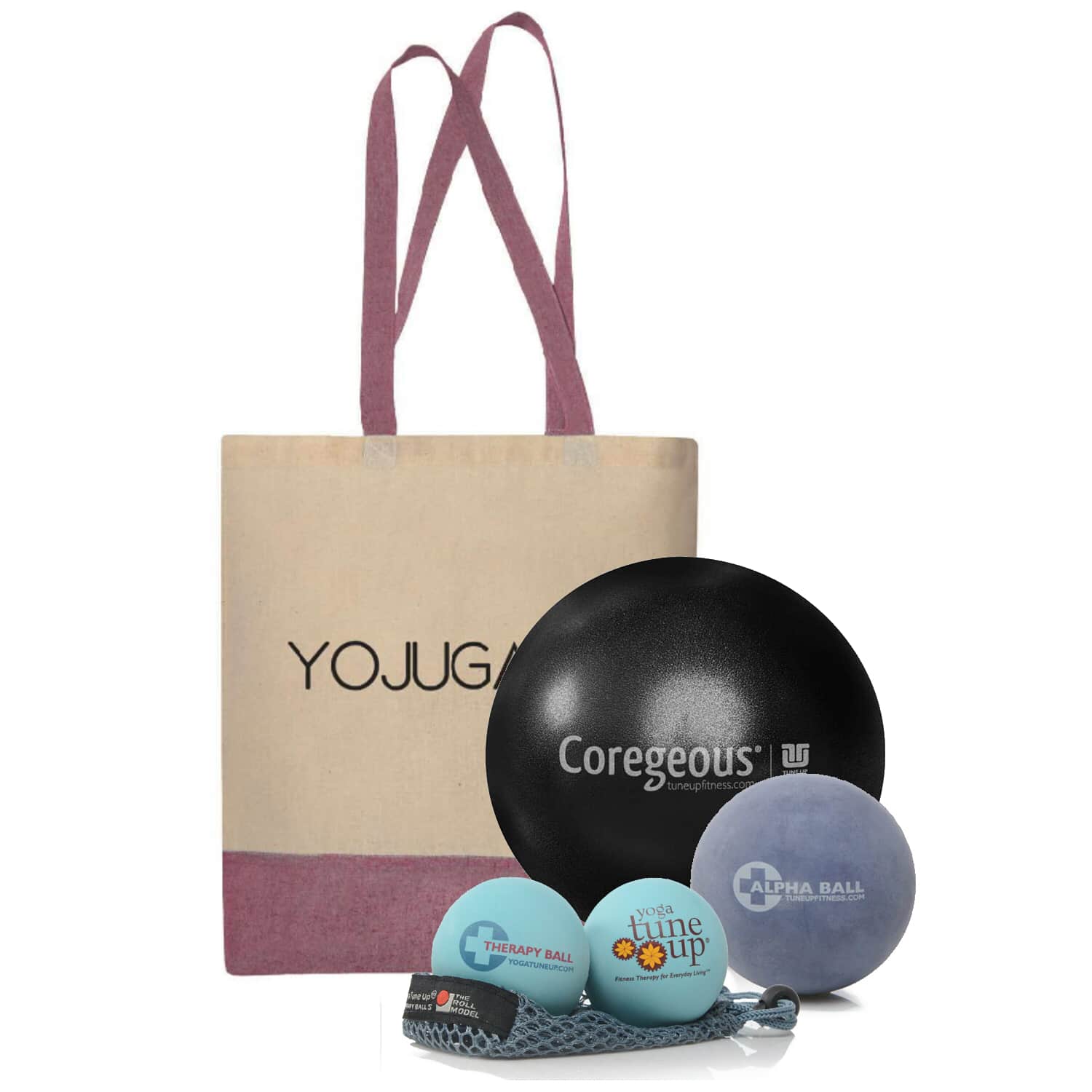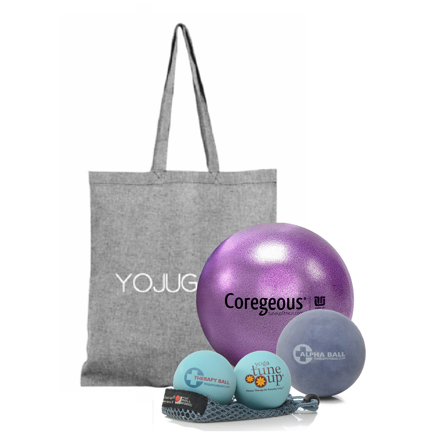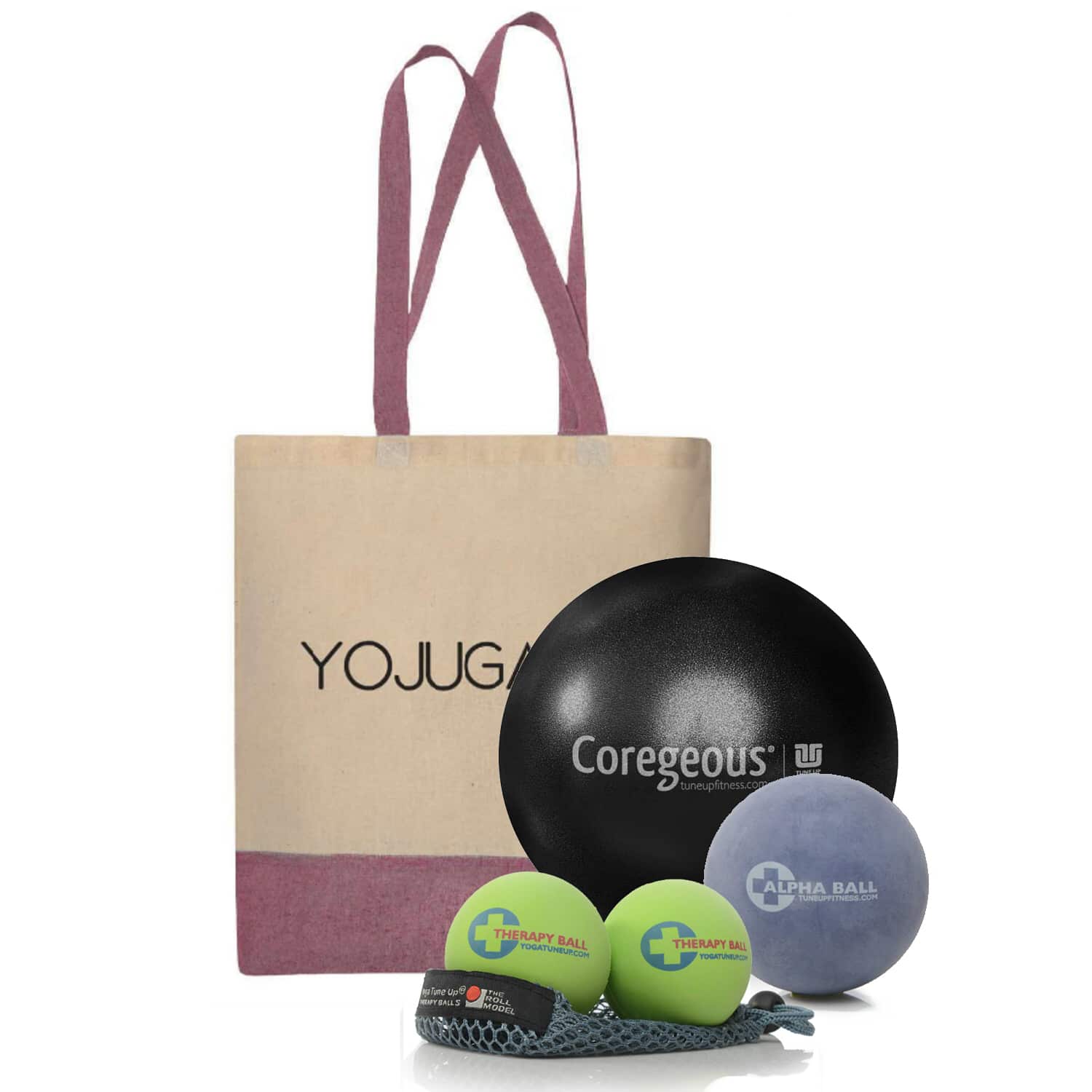 Le Roll Model Starter Kit conçu à partir de balles et ballon thérapeutiques Tune Up Fitness comprend :